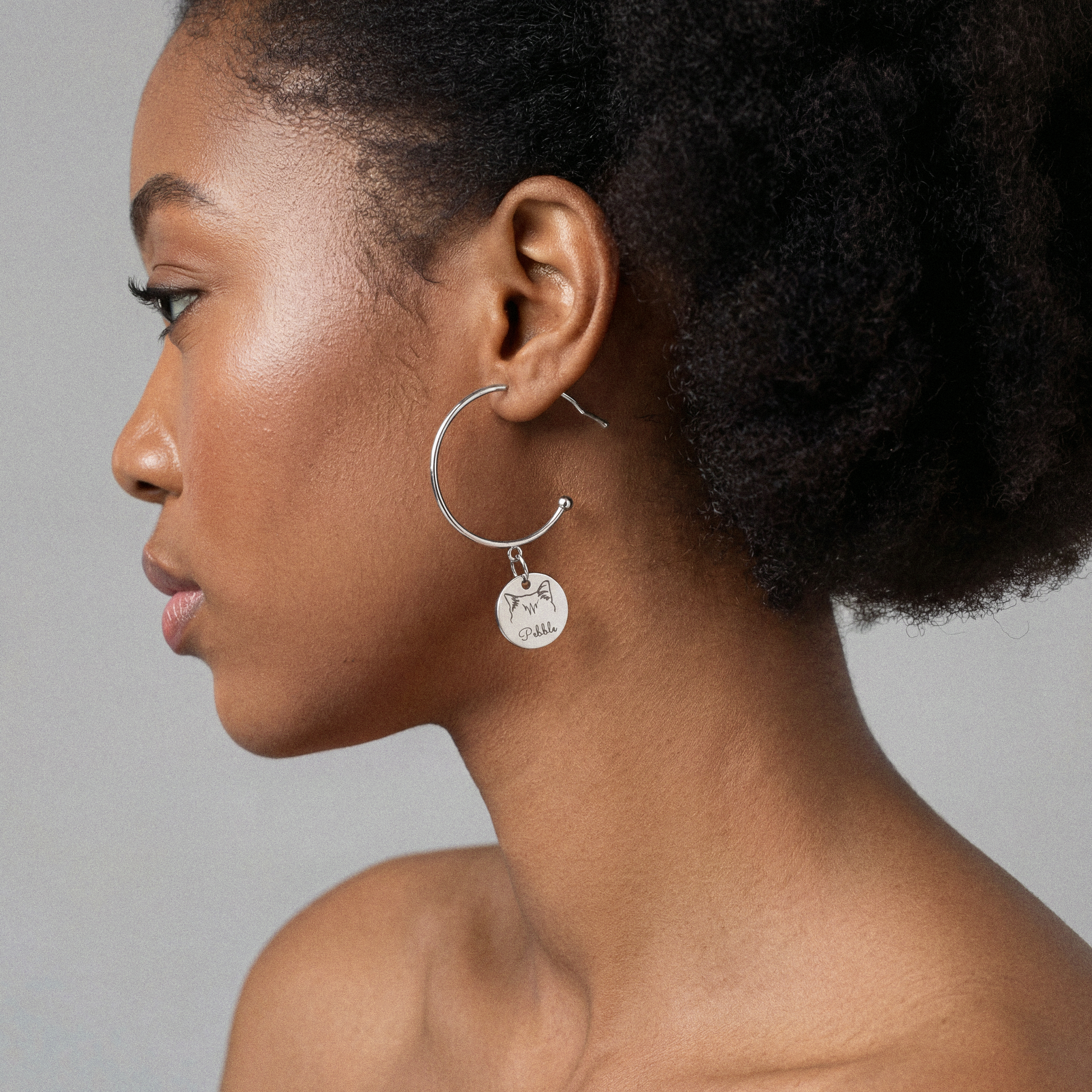 - Style: Disc Hoop Earrings with your selected cat breed's ears and custom text engraved on.